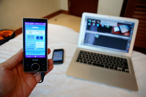 HYBRID W-ZERO3と過ごす香港旅行も最終日。残念ながら大雨で、腰痛も出てきたので、午前中はホテルでのんびりしていました。 ホテルの部屋ではこんな感じでハイブリをモデムにしてMacBook AirとiPhoneでネットにアクセス。 午後はデューティーフリーへ。妻か…